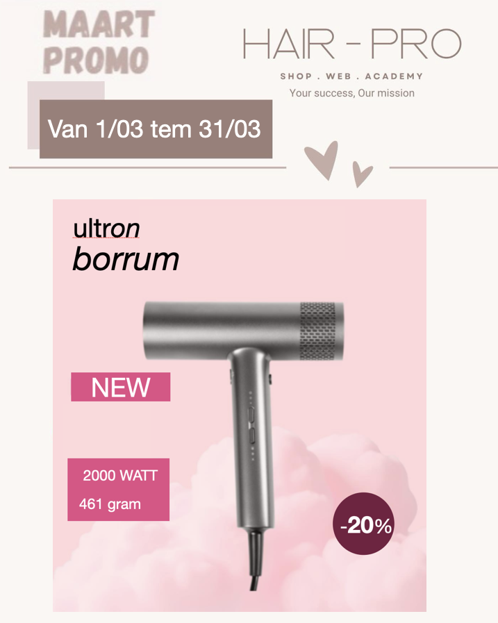 Bij HAIR-PRO Roeselare vind je alles wat een professionele kapper nodig heeft. Ontdek een uitgebreid assortiment van 12.000+ zorgvuldig geselecteerde producten, van exclusieve merken en hoogwaardige tools tot stijlvol kappersmeubilair. Met oog voor detail en passie voor schoonheid zijn wij jouw betrouwbare partner voor kwaliteit en professionaliteit.
